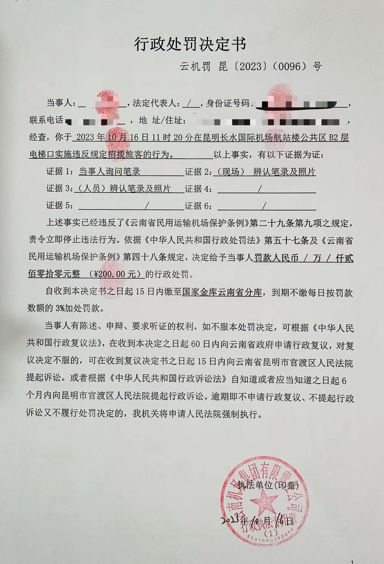 行政处罚决定书 云机罚 昆{2023} (0096)号