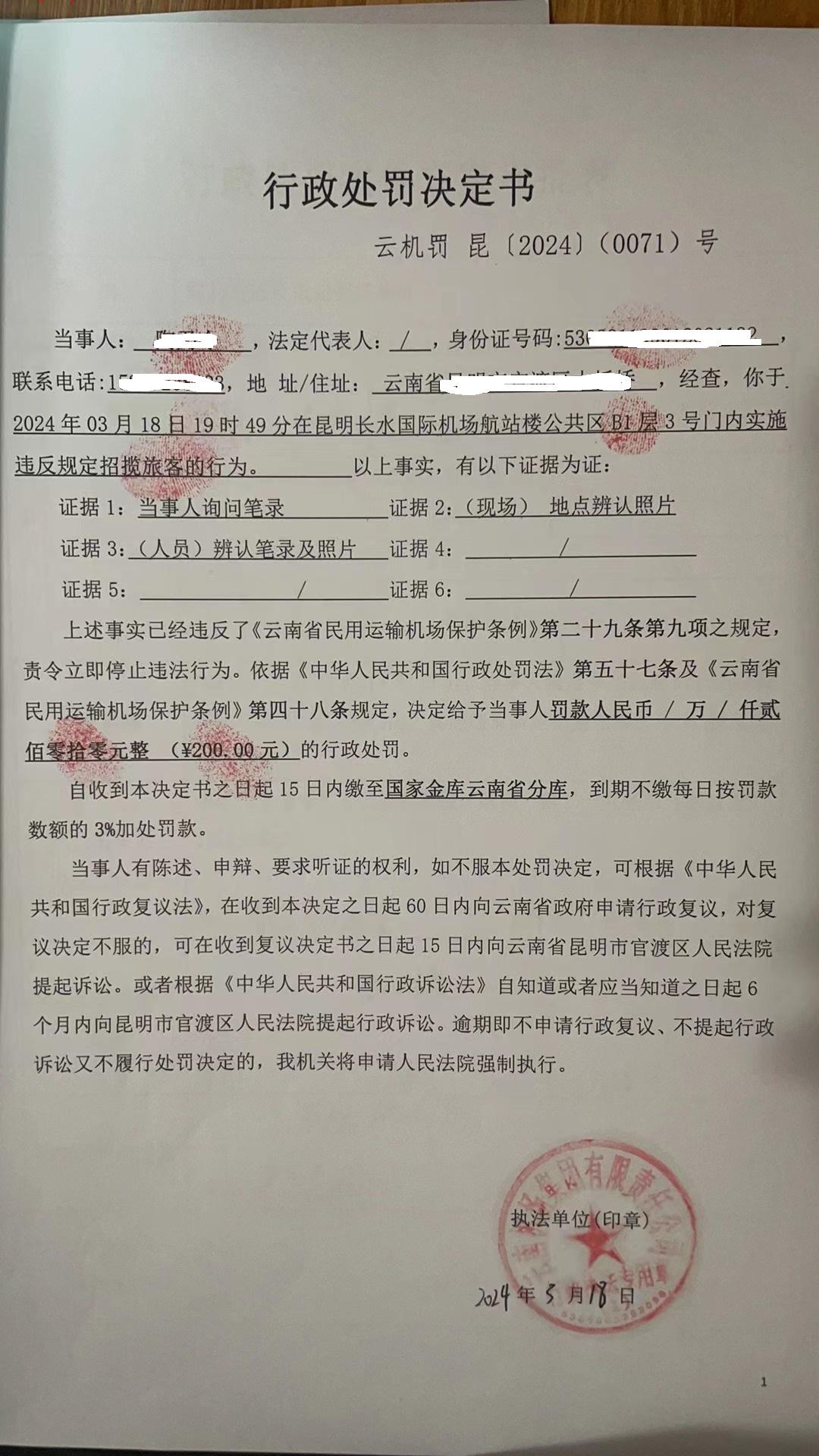行政处罚决定书 云机罚 昆{2024} (0071)号