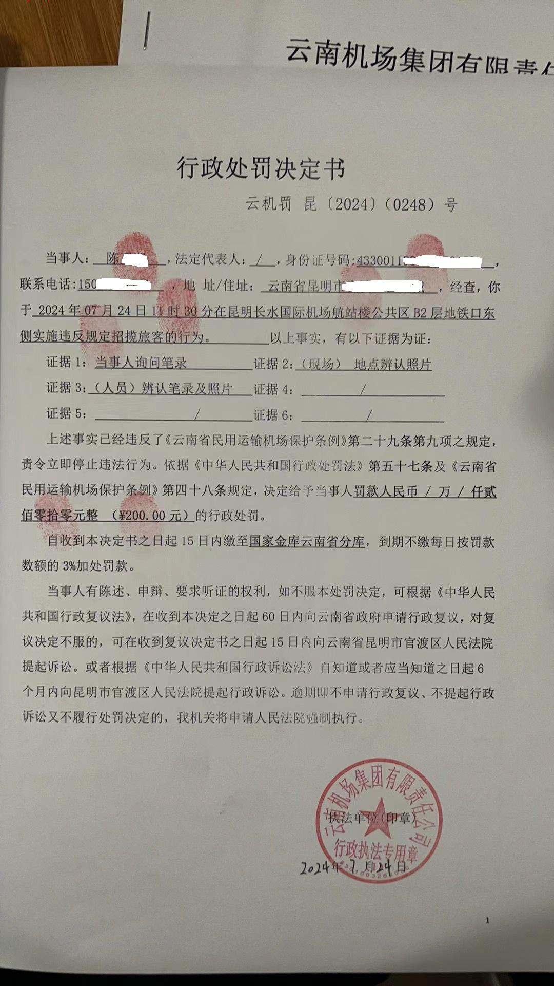行政处罚决定书 云机罚 昆{2024} (0248)号