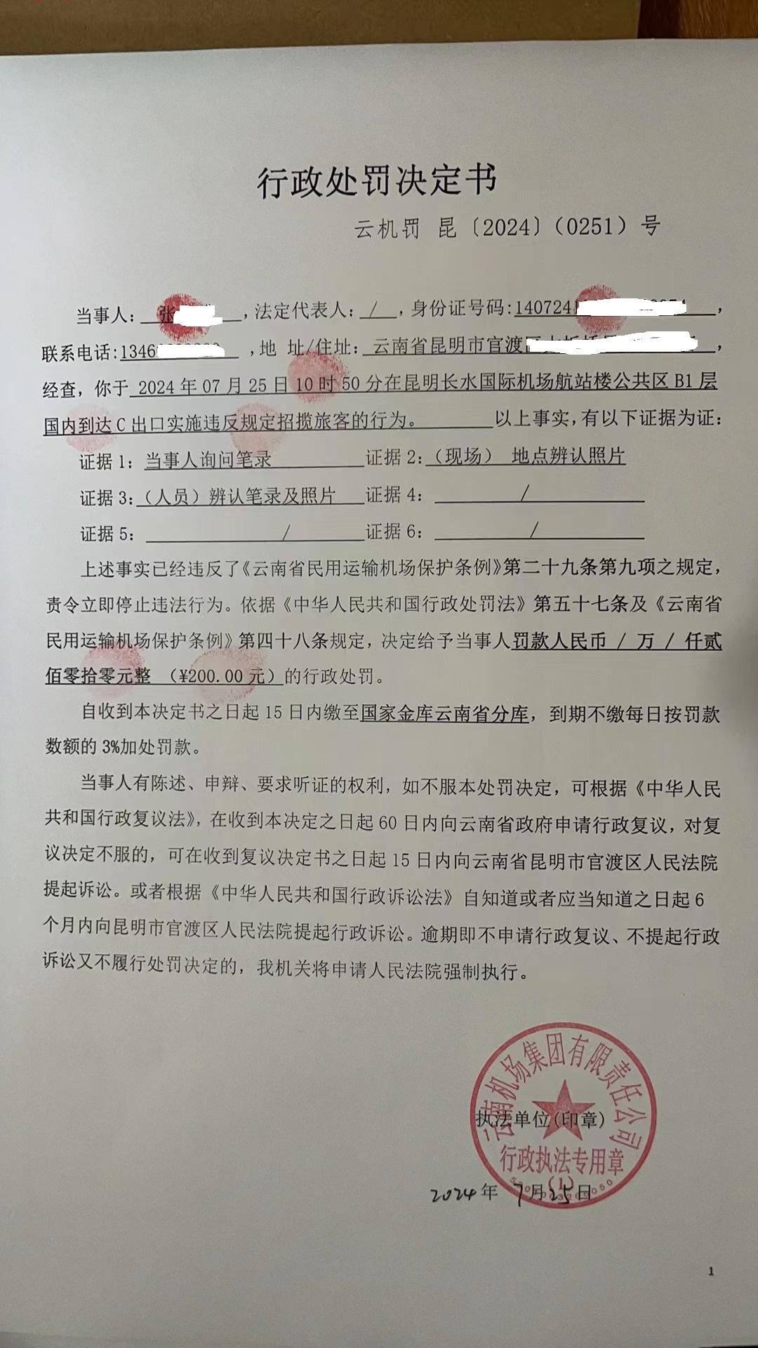 行政处罚决定书 云机罚 昆{2024} (0252)号