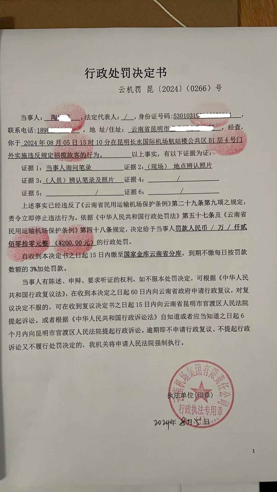 行政处罚决定书 云机罚 昆{2024} (0265)号