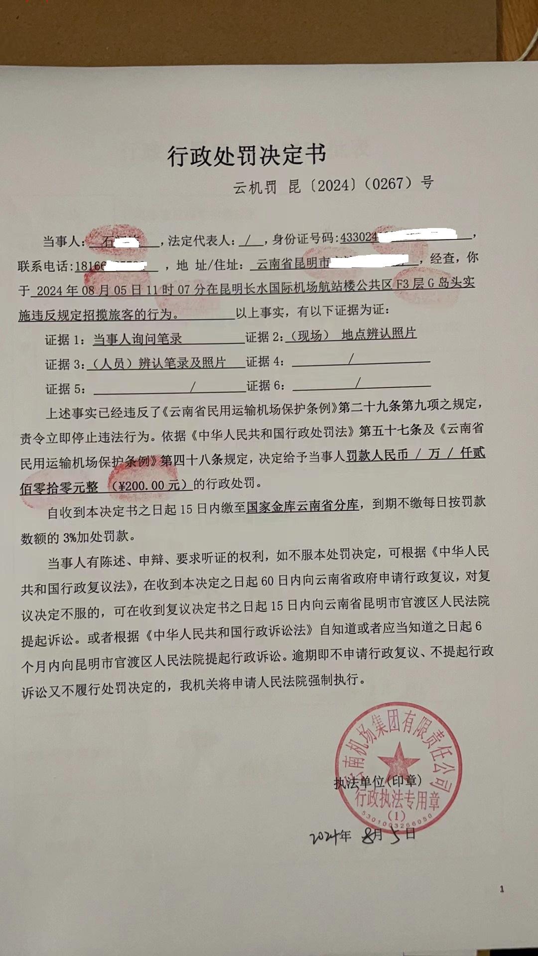 行政处罚决定书 云机罚 昆{2024} (0267)号