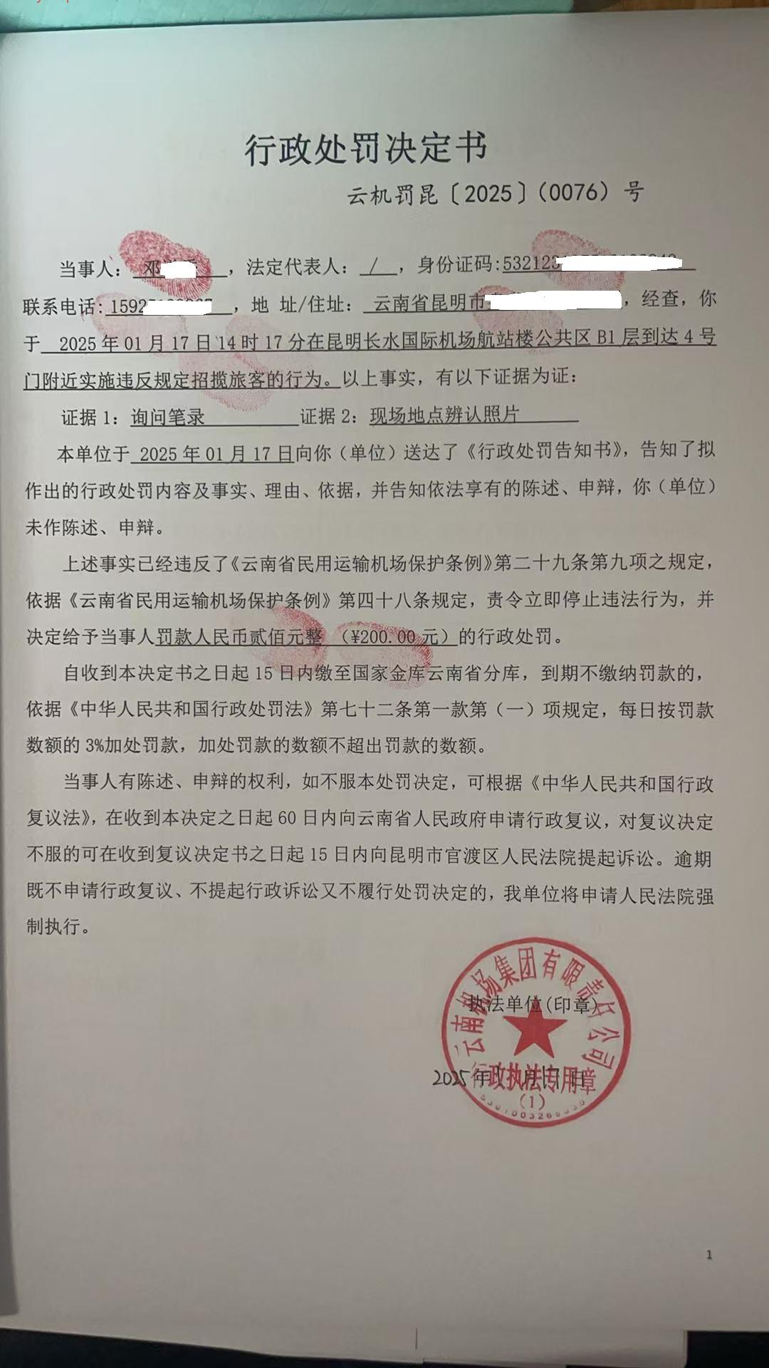 行政处罚决定书 云机罚 昆{2025} (0076)号