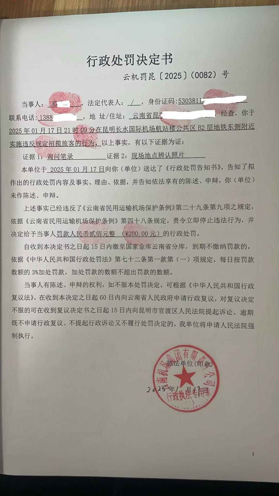 行政处罚决定书 云机罚 昆{2025} (0082)号