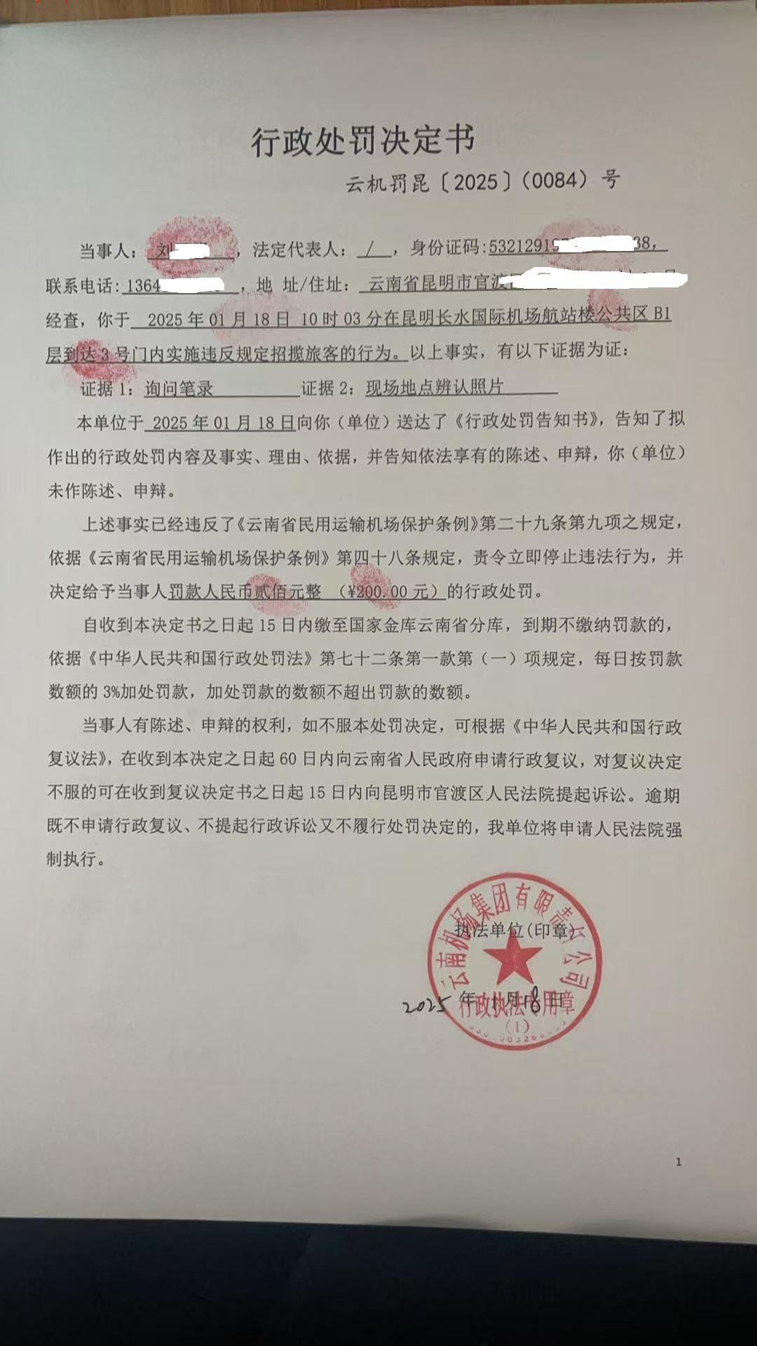 行政处罚决定书 云机罚 昆{2025} (0084)号