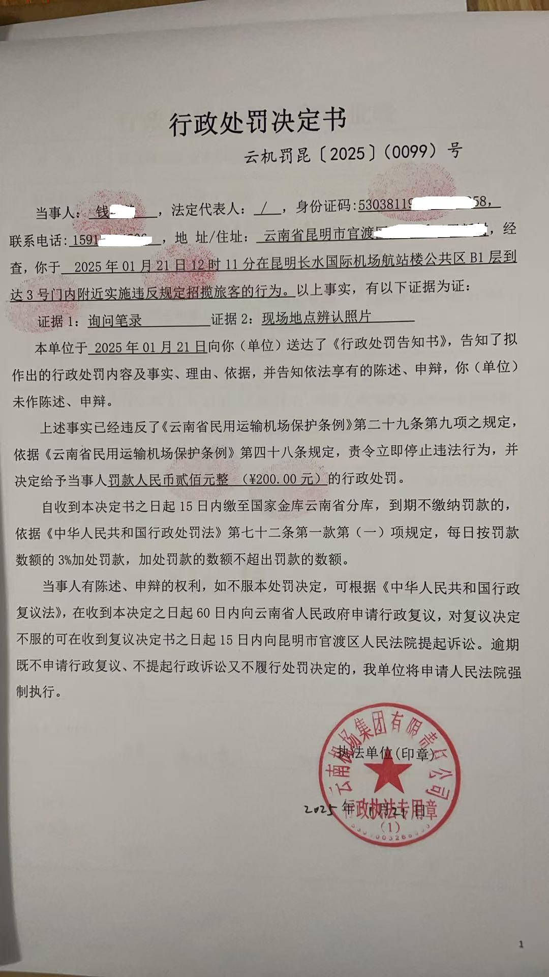 行政处罚决定书 云机罚 昆{2025} (0100)号