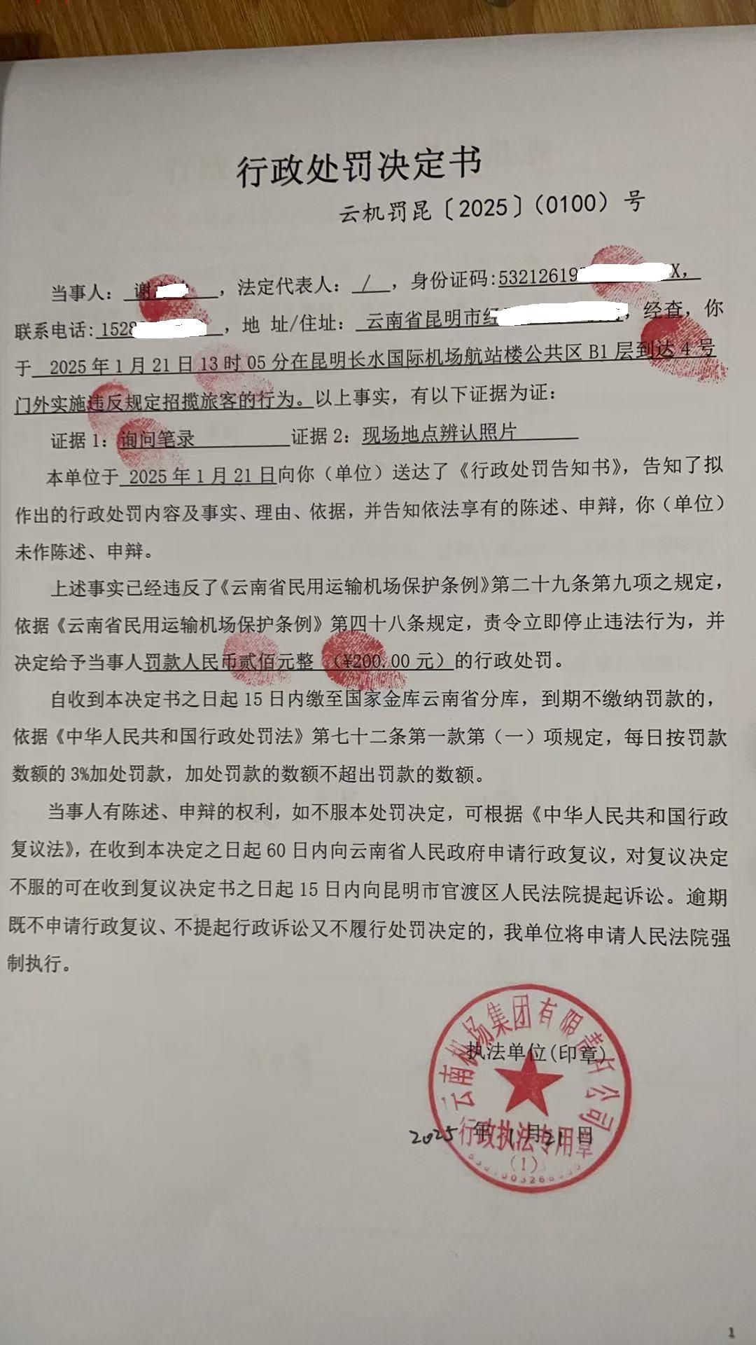 行政处罚决定书 云机罚 昆{2025} (0100)号