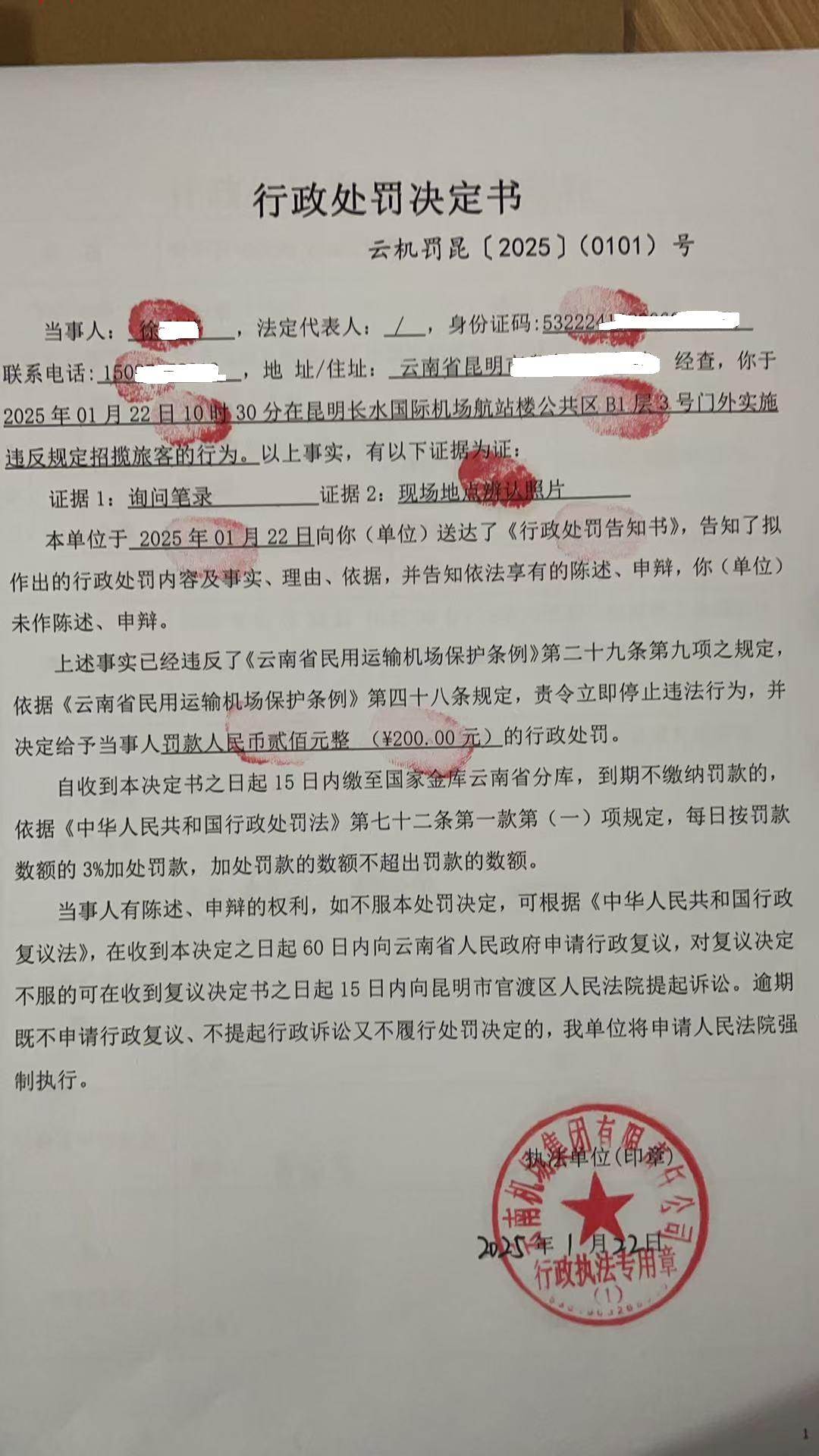 行政处罚决定书 云机罚 昆{2025} (0100)号