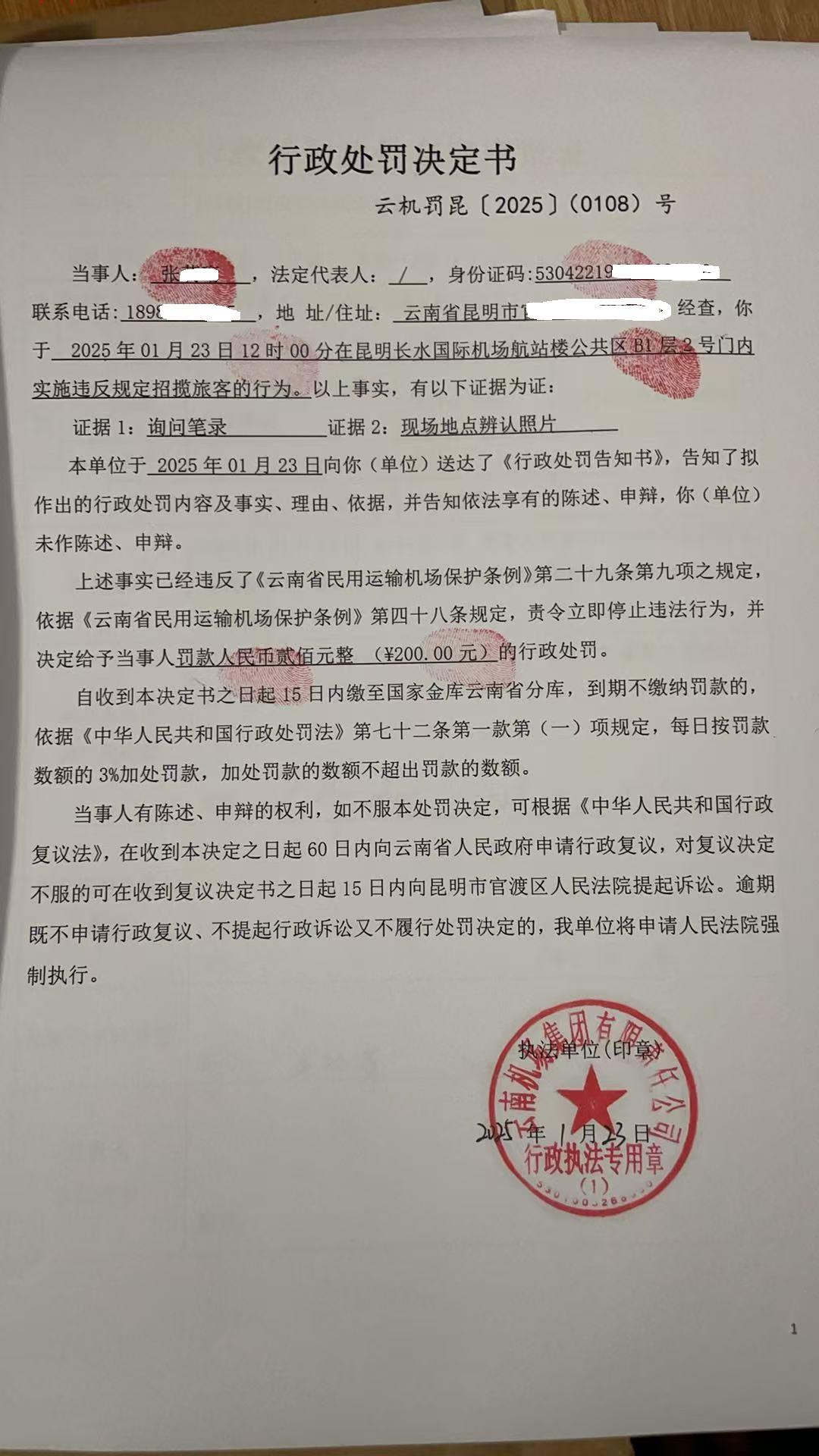 行政处罚决定书 云机罚 昆{2025} (0107)号