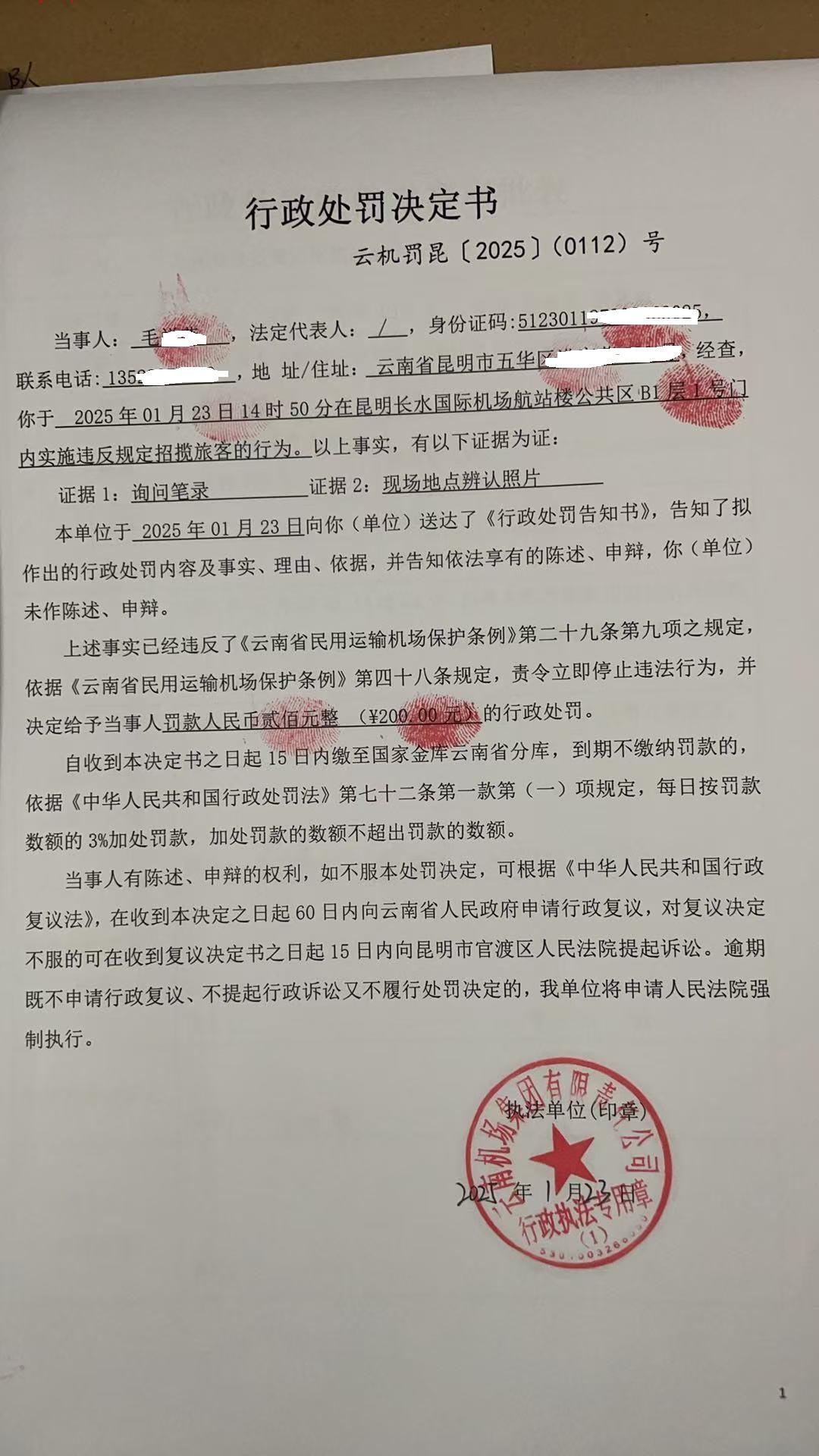 行政处罚决定书 云机罚 昆{2025} (0112)号