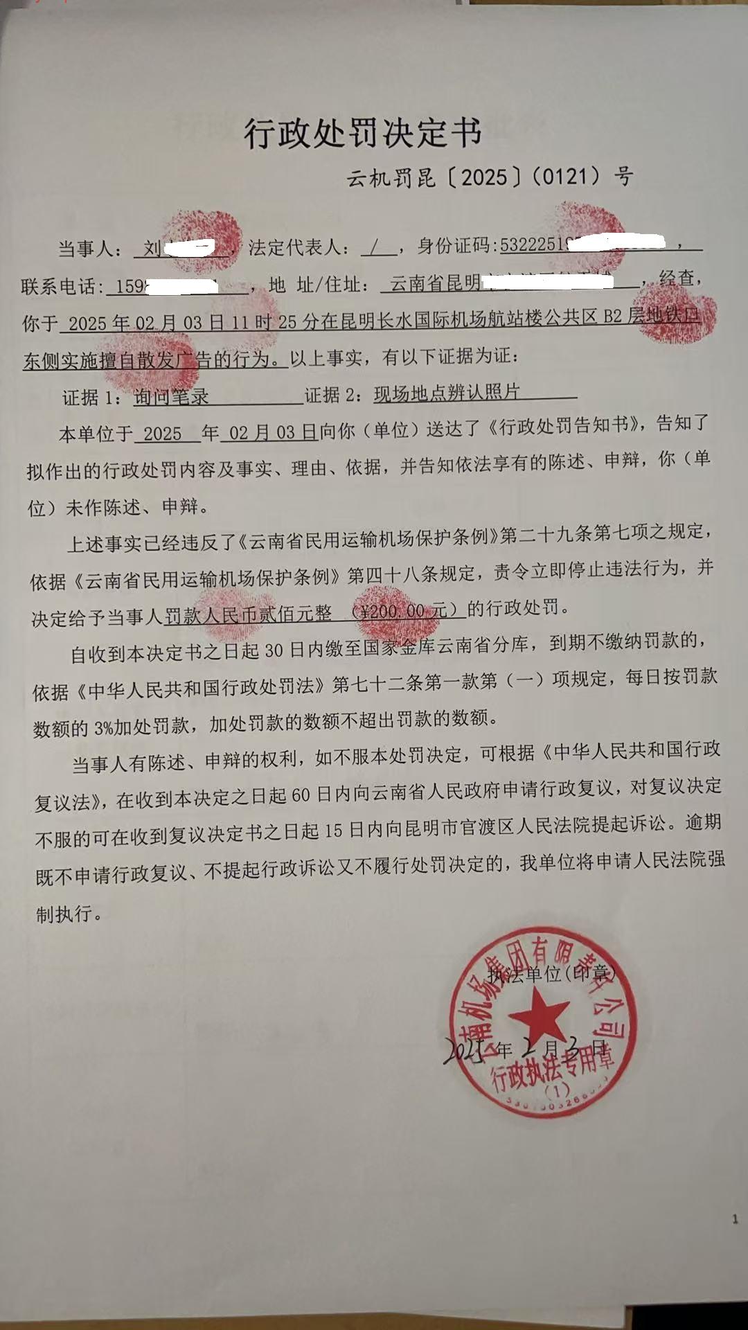 行政处罚决定书 云机罚 昆{2025} (0121)号