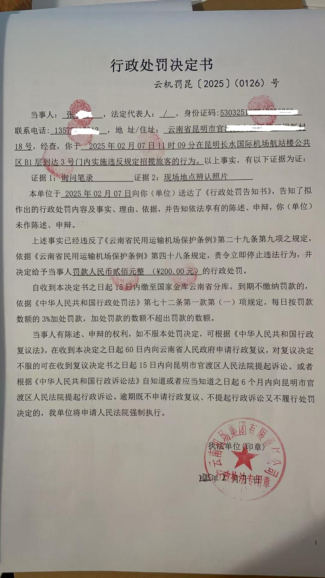 行政处罚决定书 云机罚 昆{2025} (0126)号
