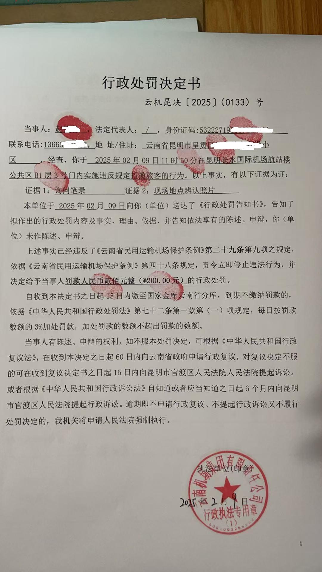 行政处罚决定书 云机罚 昆{2025} (0133)号