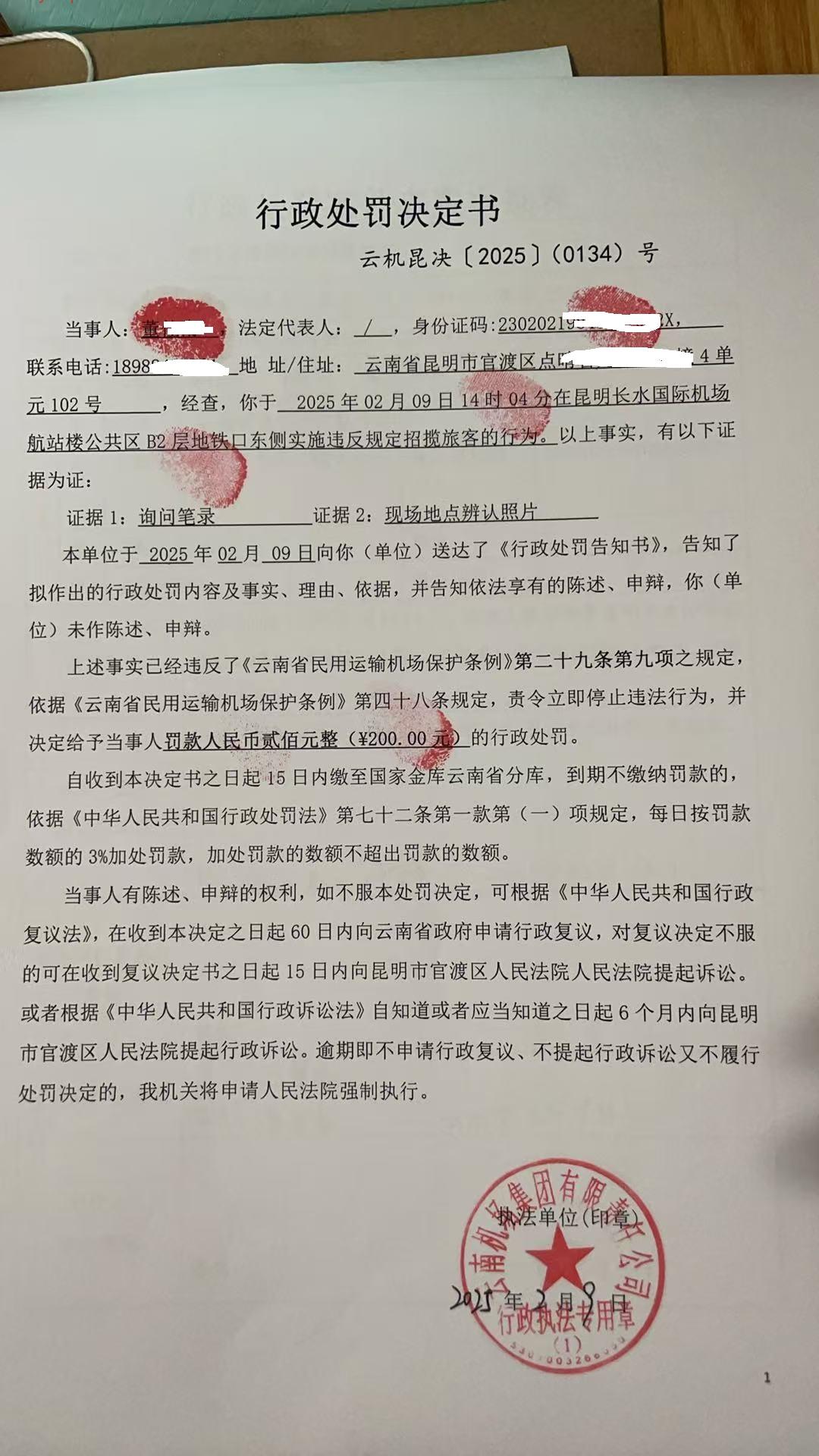 行政处罚决定书 云机罚 昆{2025} (0133)号