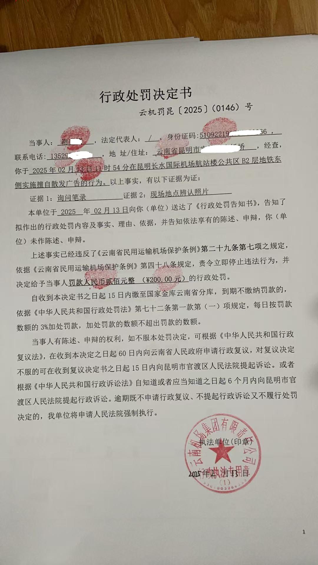 行政处罚决定书 云机罚 昆{2025} (0146)号