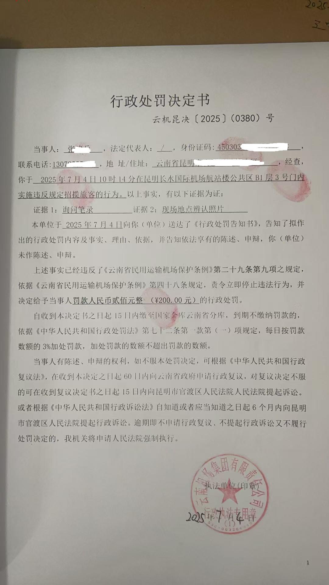 行政处罚决定书 云机罚 昆{2025} (0381)号