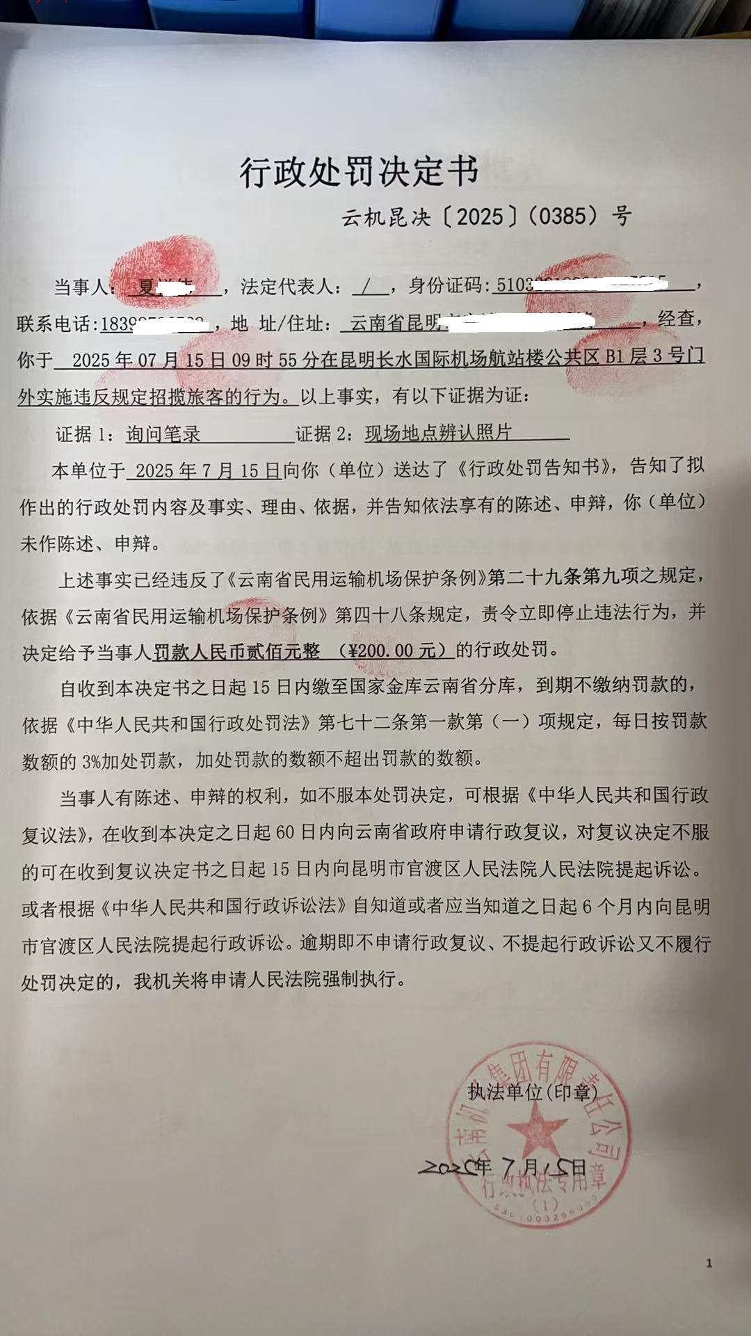 行政处罚决定书 云机罚 昆{2025} (0386)号