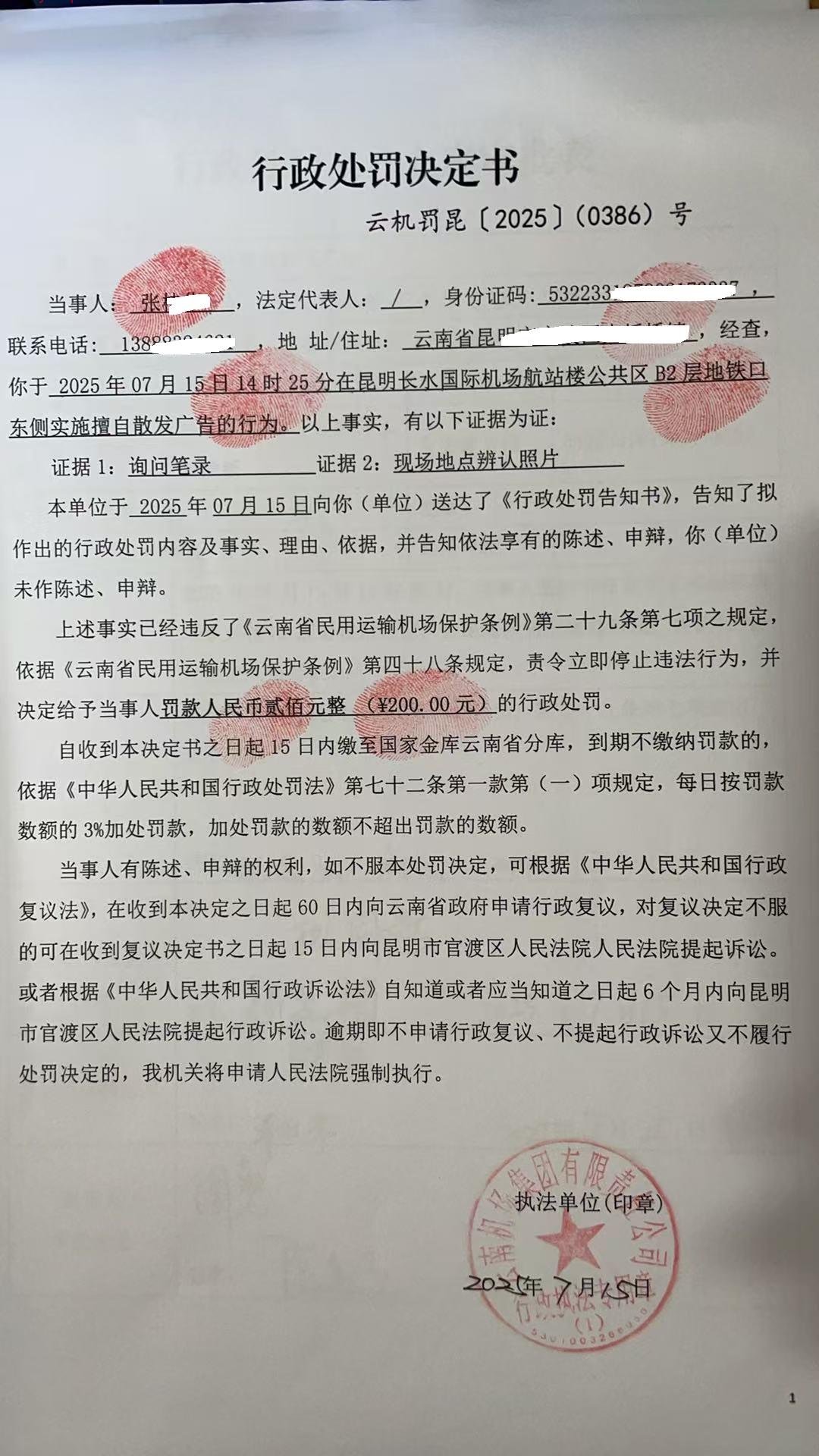 行政处罚决定书 云机罚 昆{2025} (0386)号