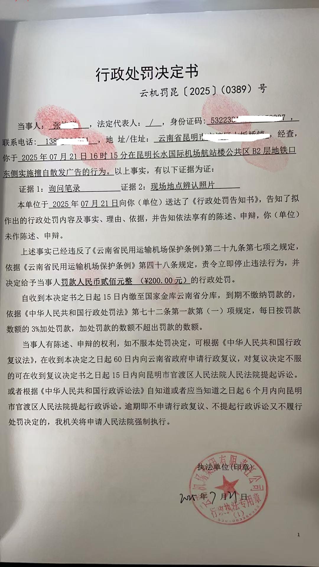 行政处罚决定书 云机罚 昆{2025} (0389)号