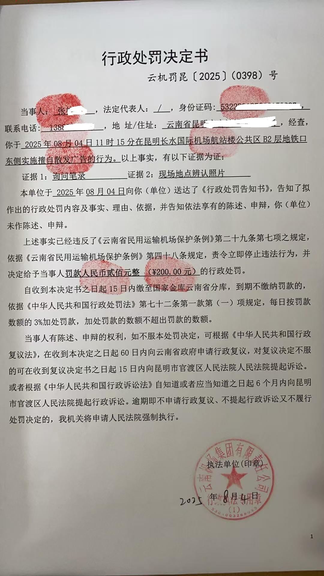行政处罚决定书 云机罚 昆{2025} (0398)号