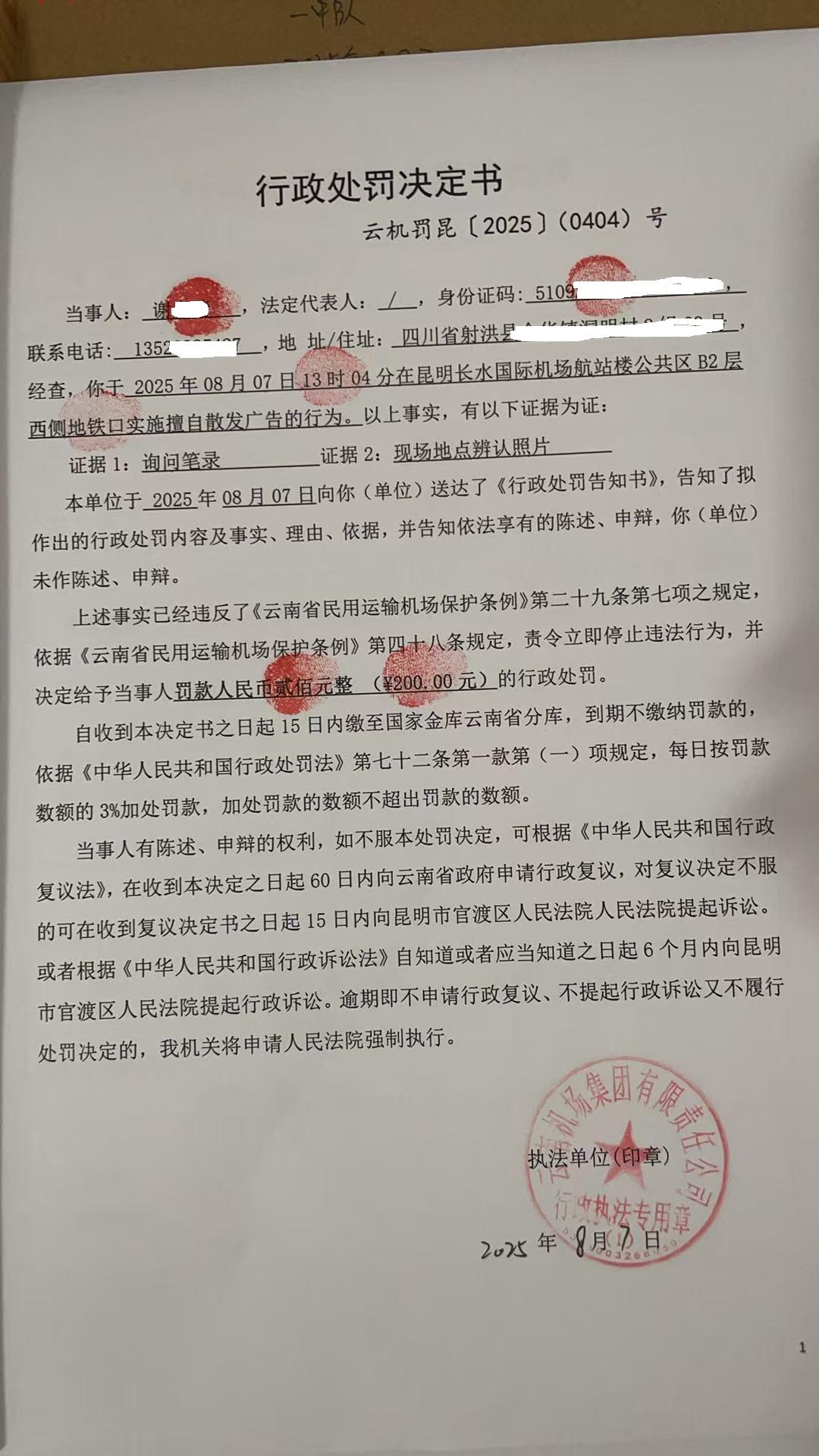 行政处罚决定书 云机罚 昆{2025} (0404)号