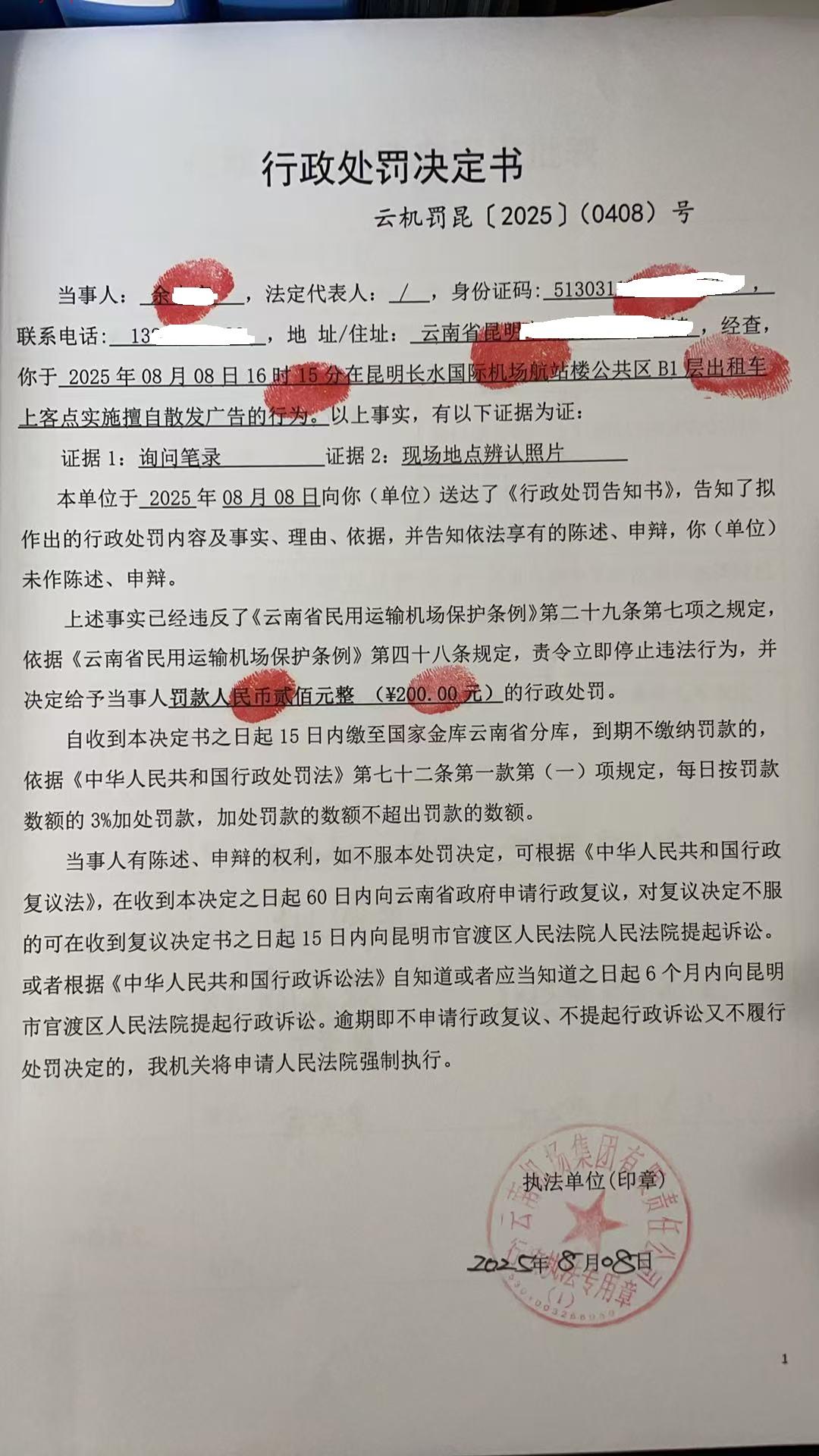 行政处罚决定书 云机罚 昆{2025} (0408)号