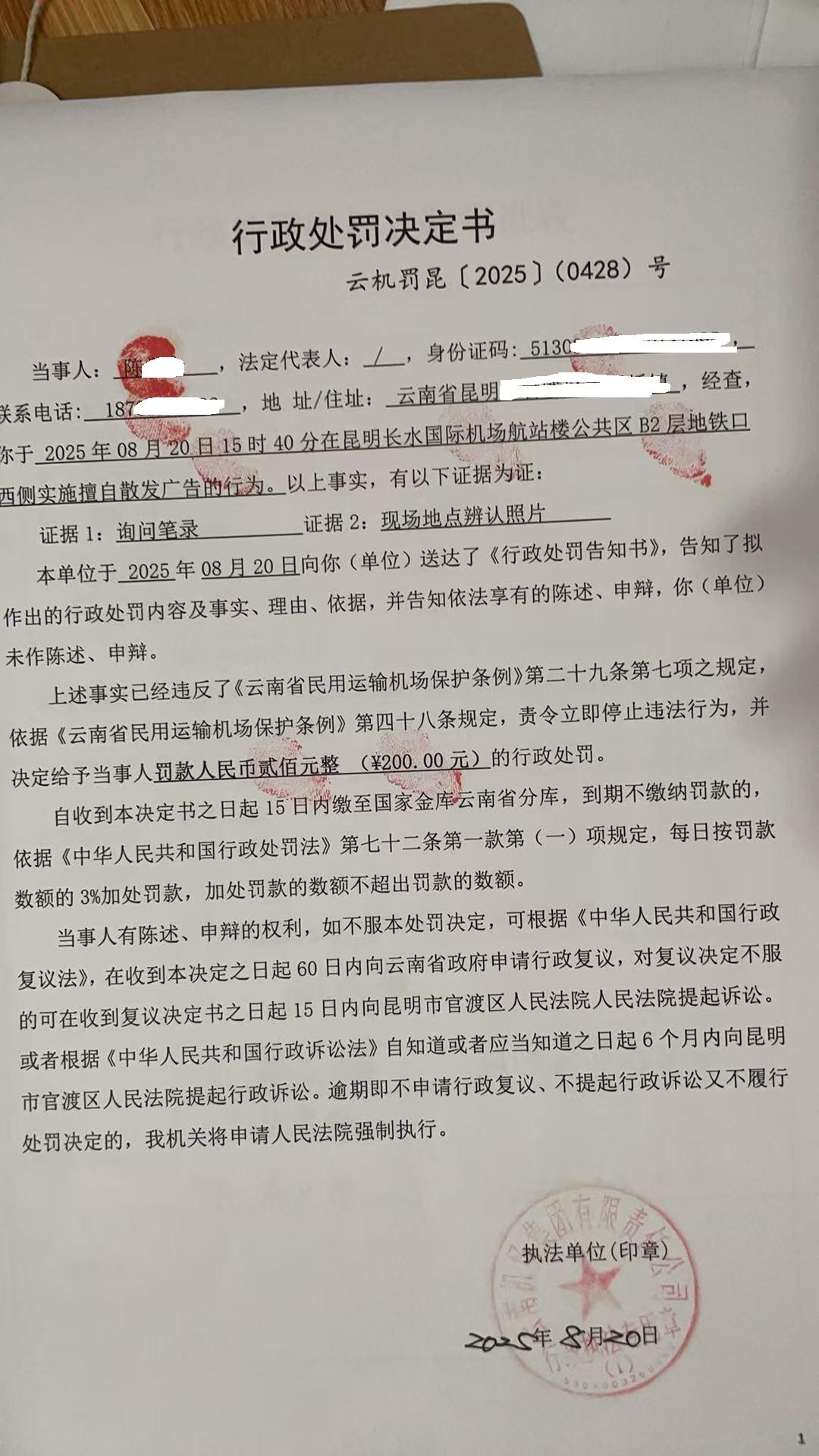 行政处罚决定书 云机罚 昆{2025} (0428)号