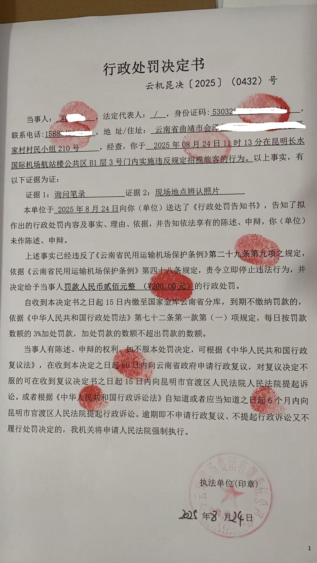行政处罚决定书 云机罚 昆{2025} (0433)号