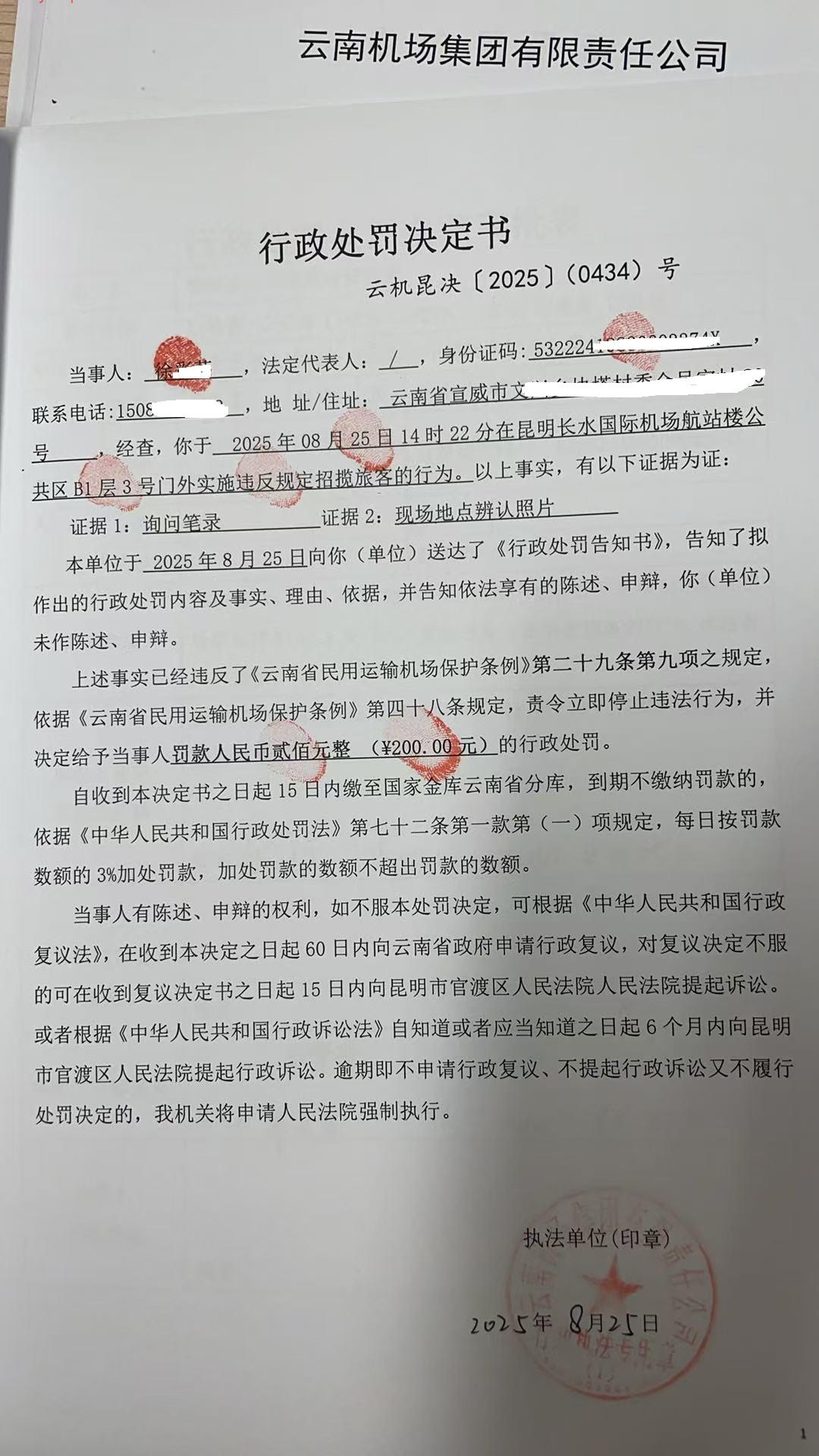 行政处罚决定书 云机罚 昆{2025} (0433)号